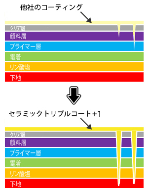 最先端技術で開発されたセラミックトリプルコート+1ならば、クリア層を保護することが可能となります。
